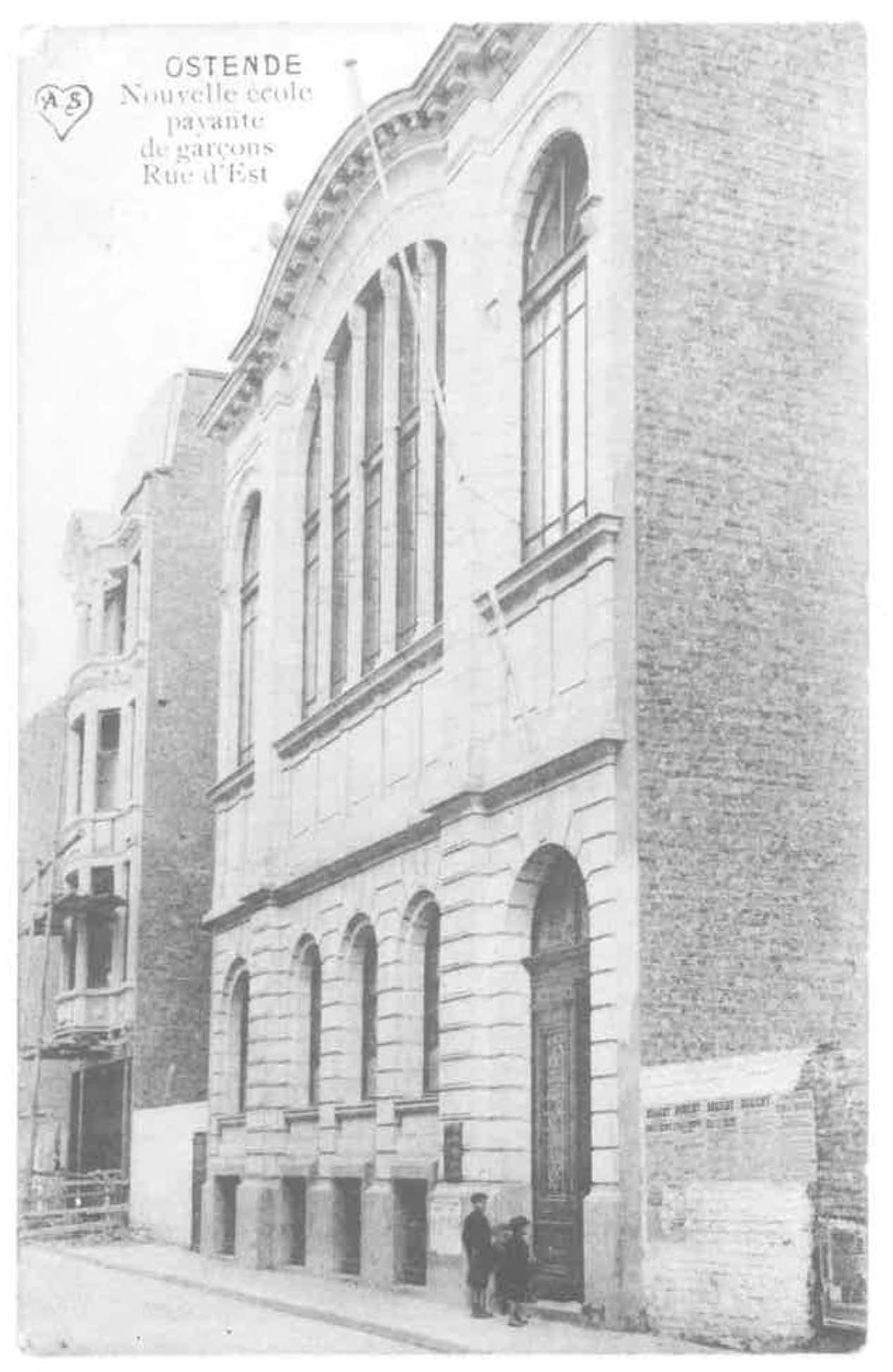 De "NIEUWE KOSTSCHOOL VOOR JONGENS", thans de ALBERTSCHOOL. Dit gedeelte van de straat was in 1910 nog niet volbouwd