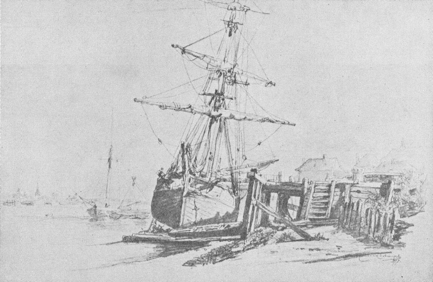 Scheepstimmerwerf bij Burcht in 1877. Dit is een primitieve vorm van een droogdok.