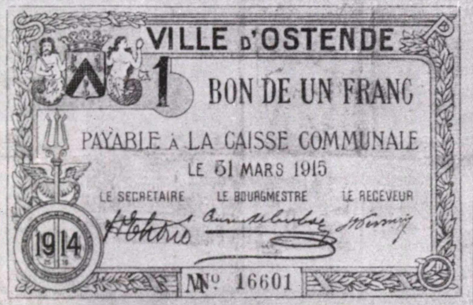 Kriegsgeld der Städte Ostende. (Sammlung Eddy Lambrecht)