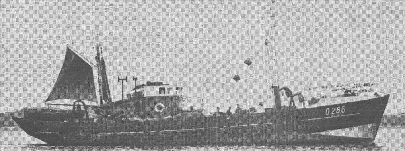 De houten O.266 “Hector-Frans” (werf Denye, 1938) met droogvis op het bakdek.
