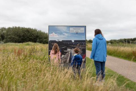 Op een wandeling door het Natuurpark Atlantikwall Raversyde kom je langs modules met historische foto’s die tijdens en kort na de Tweede Wereldoorlog genomen werden van de Vlaamse kust en het hinterland. Je volgt de Atlantikwall – een Duitse verdedigingslijn die van Noorwegen tot de Frans-Spaanse grens liep – en komt zo in aanraking met de resultaten van een brede waaier aan archeologisch onderzoek naar de Tweede Wereldoorlog.